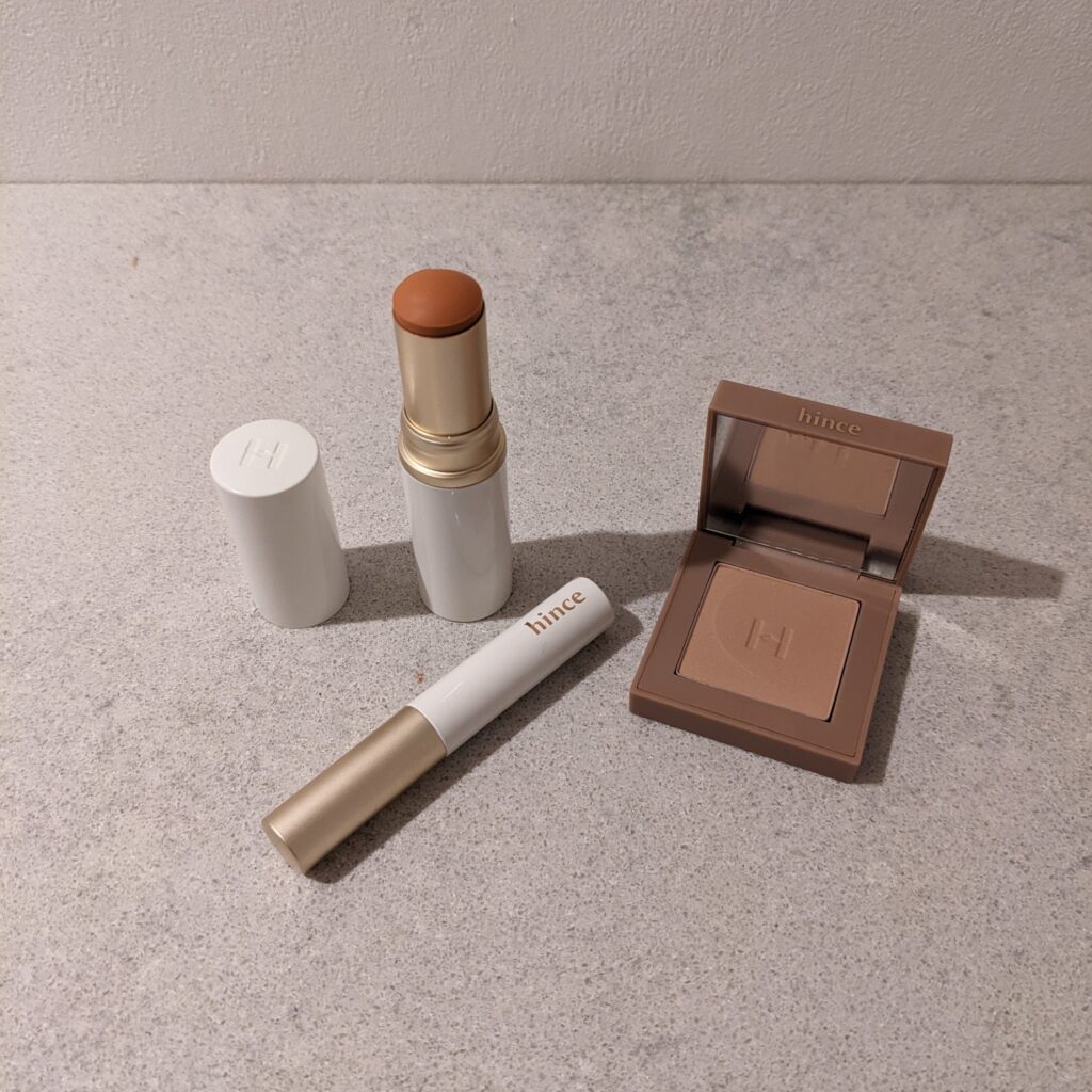 hinceのアイシャドウとバーム、アイブロウマスカラの3点です。