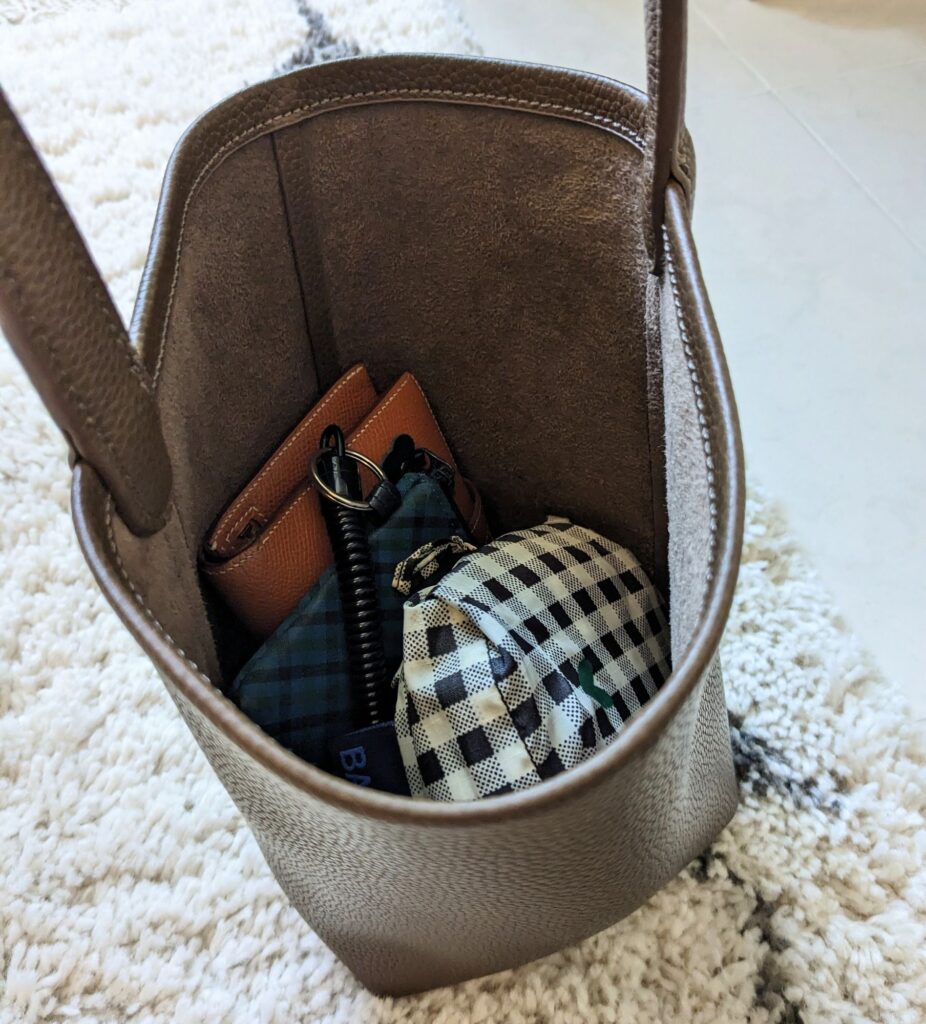 たくさんの荷物は入らないけれど、最低限のお財布やカードケース、スマホ、エコバッグ、ハンカチ、リップくらいなら全く問題ないです。