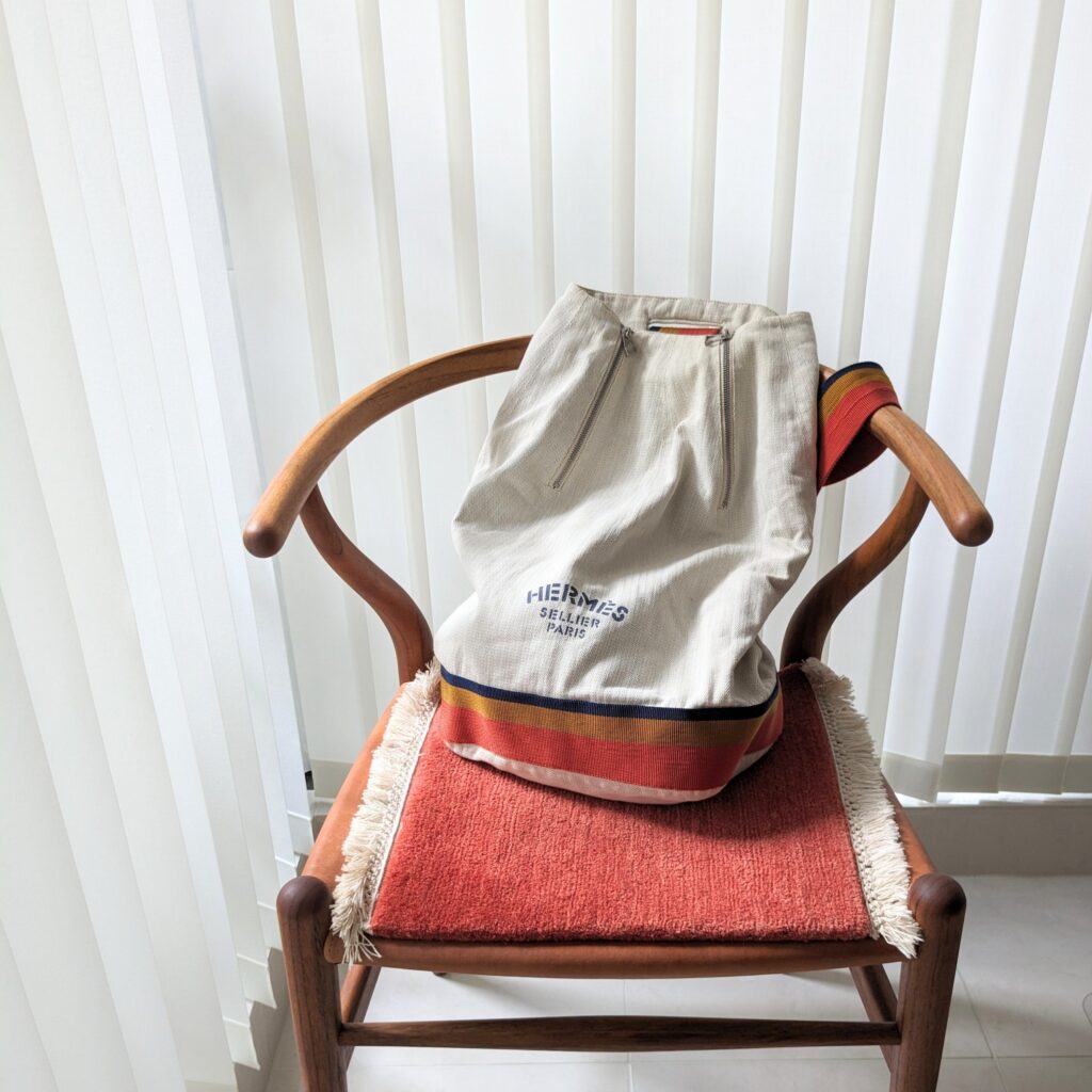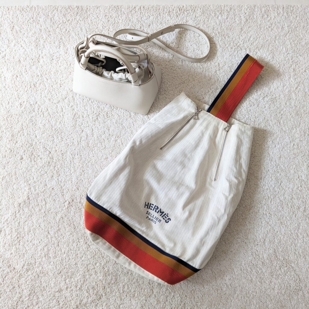 ヴィンテージのキャンバスバッグは、肩にさっとかけられる形状と、アクセントになるデザインが気に入っています。