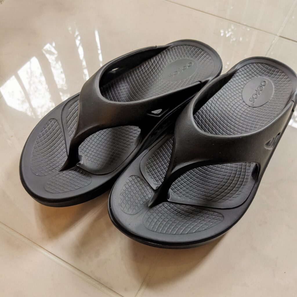 ちなみに雨が振ったときも想定して、Oofosのサンダルも持っていくつもりでした。