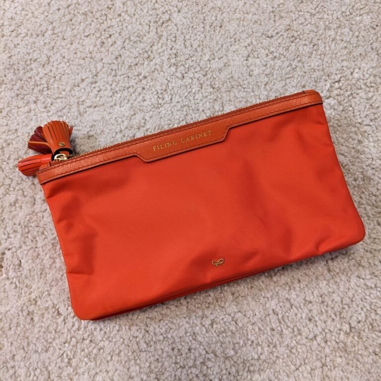 出社編ならではの持ち物としては、このAnya hindmarchのポーチがあります。